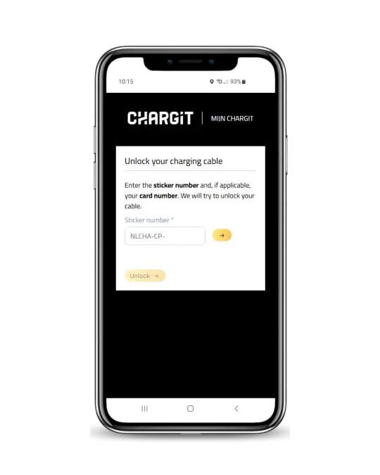 Vul het Charg&Pay stickernummer in en klik op het pijltje.